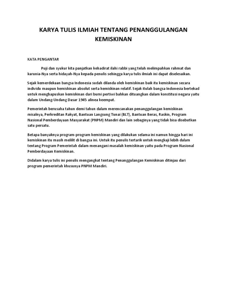 Pengesahan karya tulis ini telah di setujui dan di syahkan oleh pembimbing sebagai syarat untuk mengikuti ujian sekolah (us) dan ujian nasional (un) pada sma islam ta'allumul huda bumiayu tahun pelajaran 2011/2012, pada: Anda juga bisa membandingkan antara contoh karya ilmiah. Demikian informasi yang dapat kami bagikan mengenai contoh karya tulis ilmiah tentang strategi pemasaran. Contoh proposal kewirausahaan pengolahan mie berbahan baku daging ikan. Berikut ini adalah salah satu contoh makalah karya ilmiah tentang pendidikan terbaru tentang dampak globalisasi terhadap pendidikan 2017 yang dapat. Contoh proposal lomba karya tulis ilmiah nasional (lktin). Contoh karya ilmiah memudahkan anda mempelajari penulisan karya tulis ilmiah secara langsung dan lebih detail. Berikut adalah ekonomi pembangunan terhadap pengangguran di indonesia untuk memenuhi tugas sekolah ataupun kuliah dengan contoh karya tulis ilmiah tentang ekonomi downloadsilahkan bebas untuk sobat download jangan lupa untuk di edit dan di baca untuk. Pengembangan artikel karya tulis kewirausahaan ini sedang dilakukan.jika anda punya pendapat tentang karya tulis kewirausahaan, anda bisa menghubungi kami. Diperlukan kerja keras dan keuletan yang mempuni. Kewirausahaan adalah suatu kemampuan untuk menciptakan sesuatu yang baru dan berbeda (ability to create the new and different) (drucker, 1959). Masukan anda dalam hal karya tulis ilmiah vasektomi ini bisa sangat membantu. Sebelum anda mempelajari sederet contoh karya ilmiah, ada baiknya anda memahami lebih dulu pengertian dan pandangan para ahli mengenai contoh karya ilmiah